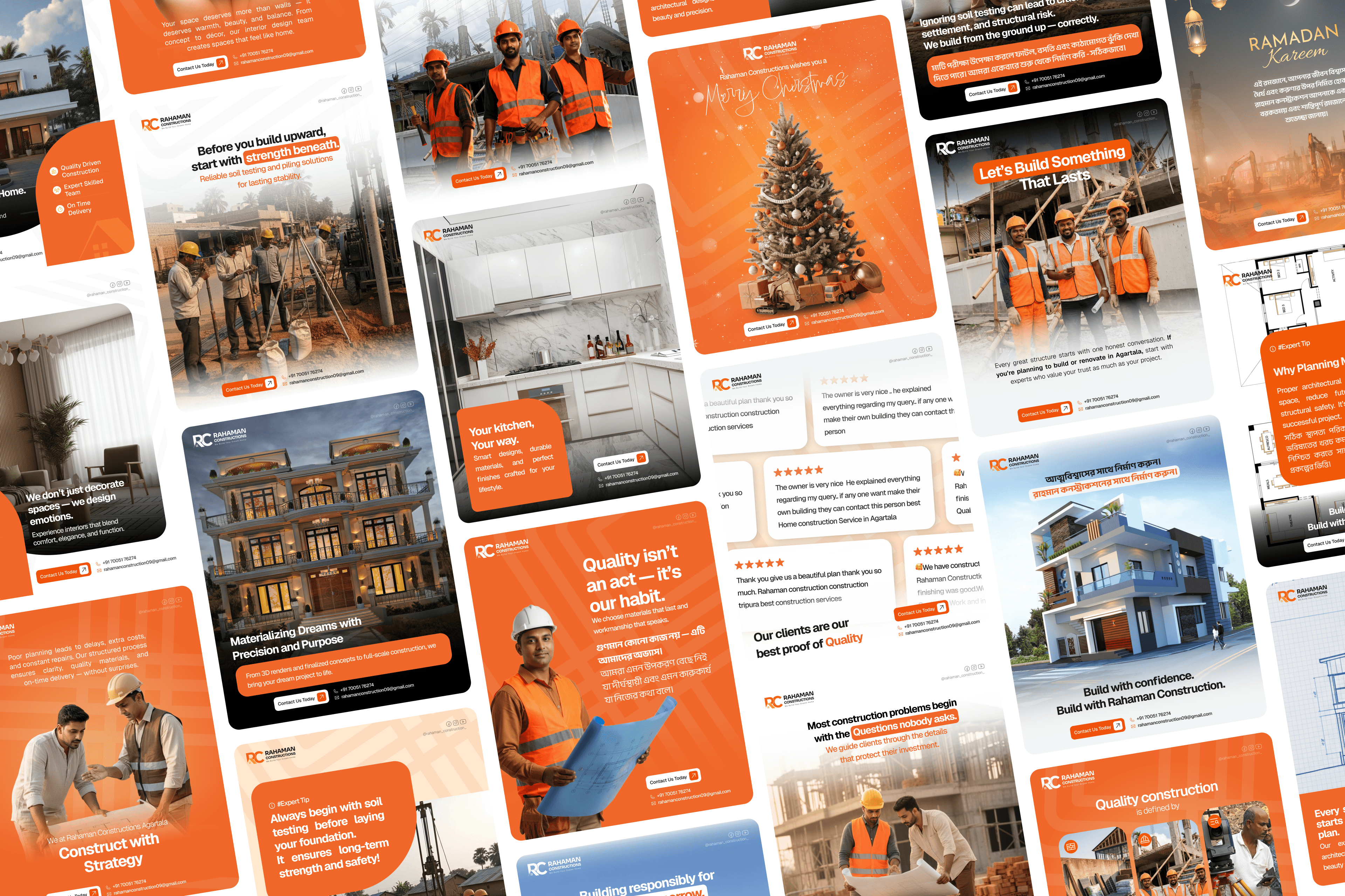 We redesigned the Rahaman Constructions website with a modern layout, refreshed the logo for stronger brand recognition, and provided social media management and soft branding. The cohesive visual strategy elevated their digital presence and boosted engagement across platforms.